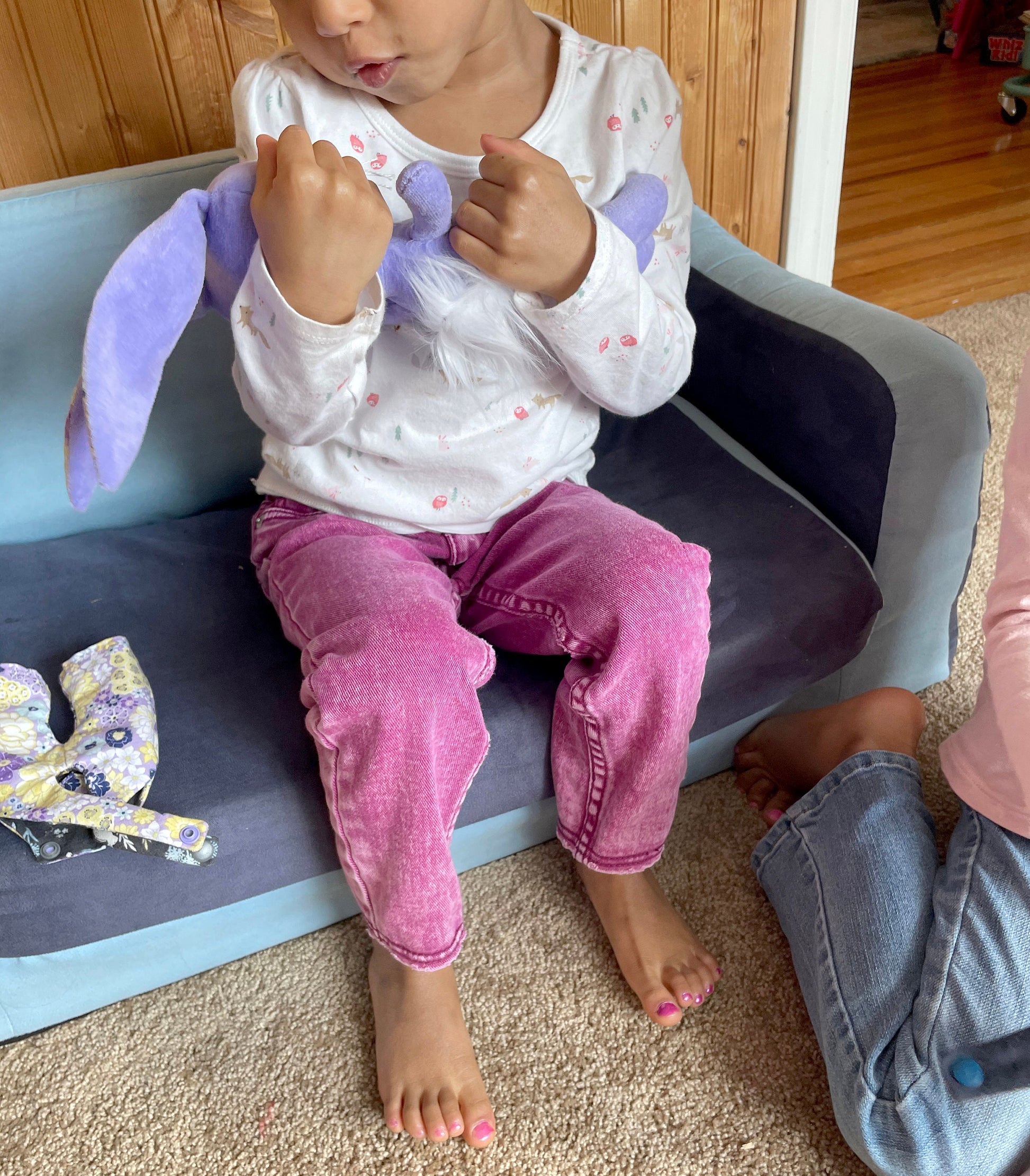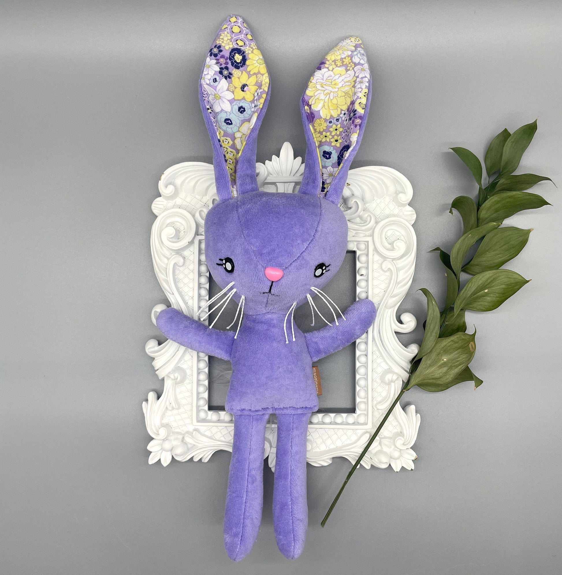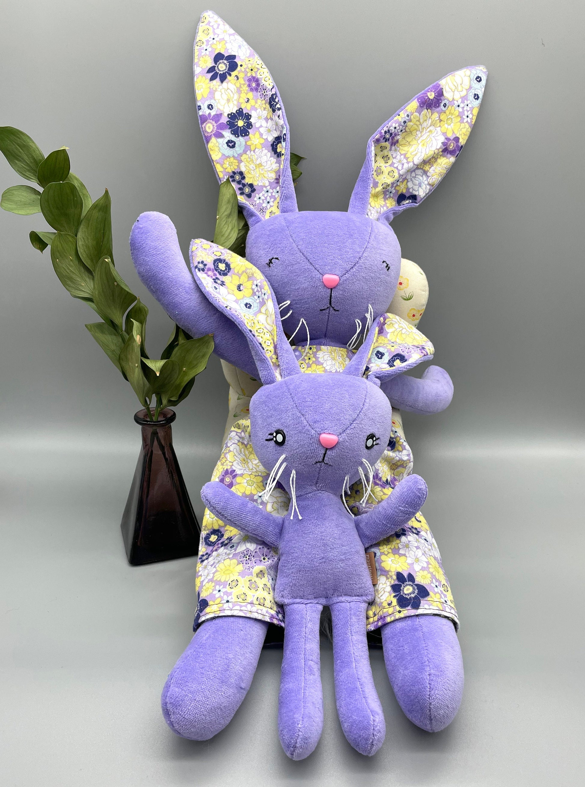 Reversible Handmade Easter Bunny "MOXIE," Stuffed, girl boy easter basket, baby rabbit, easter gift, gift for kids, Easter Doll, toy, purple
