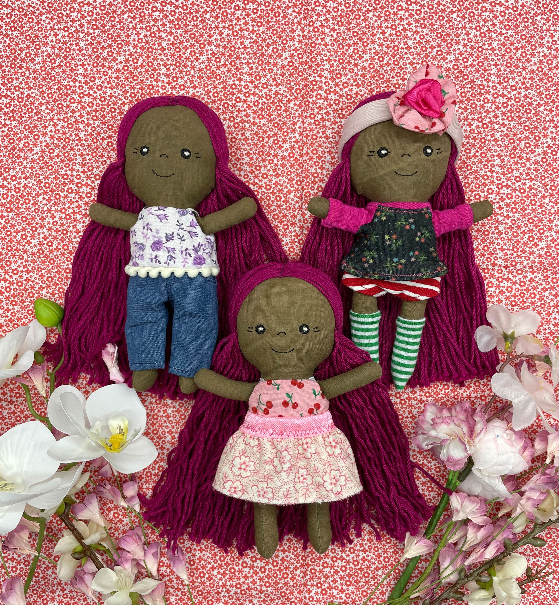 Each doll's face is embroidered on my home sewing machine originally designed and created with home embroidery software.